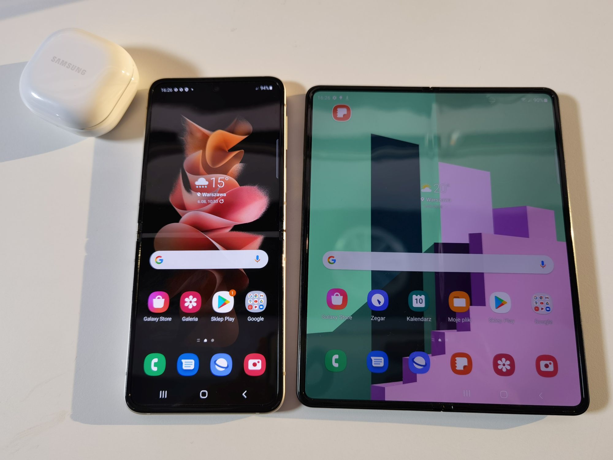 Podobnie jak w poprzednikach nowy smartfon również otrzymał zawiasy, które pozwalają na postawienie go i korzystanie w pełni ze wszystkich funkcji oferowanych w trybie Flex. Możemy ustawić telefony w dowolnym rozłożeniu od złożenia po całkowite rozłożenie. Przydaje się to np. gdy prowadzimy telekonferencje czy robimy zdjęcie, które potrzebuje statywu, a go nie posiadamy. Zadbano również o zabezpieczenia, które blokują cząsteczki kurzu i brudu. Nie jest to jednak jeszcze w pełni pyło- i kurzo- szczelny. Jak wspomniałam wcześniej nie posiadają jeszcze odpowiednich certyfikatów. Tutaj pewnie jeszcze poczekamy na kolejne odsłony w przyszłości.